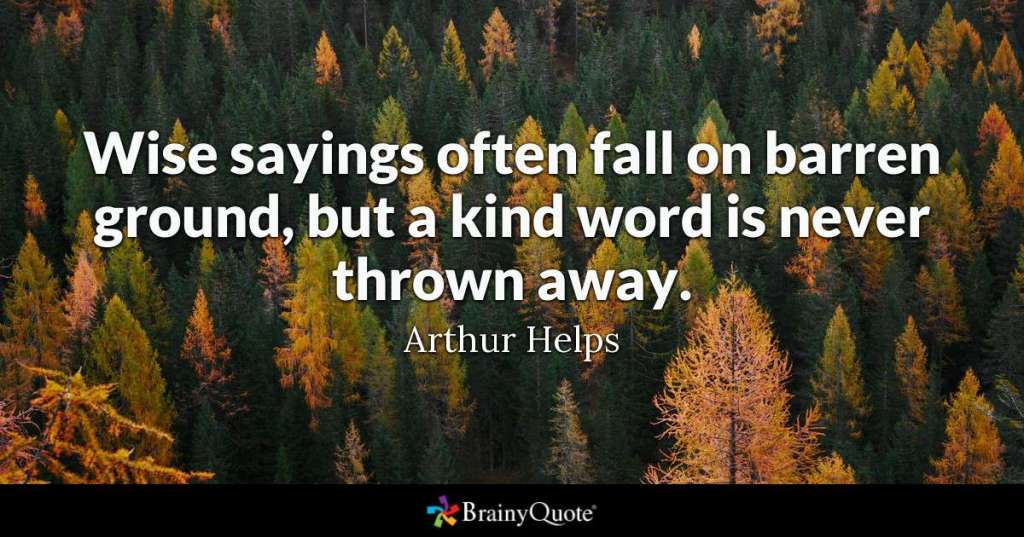 “Wise sayings often fall on barren ground, but a kind word is never thrown away.” – Arthur Helps