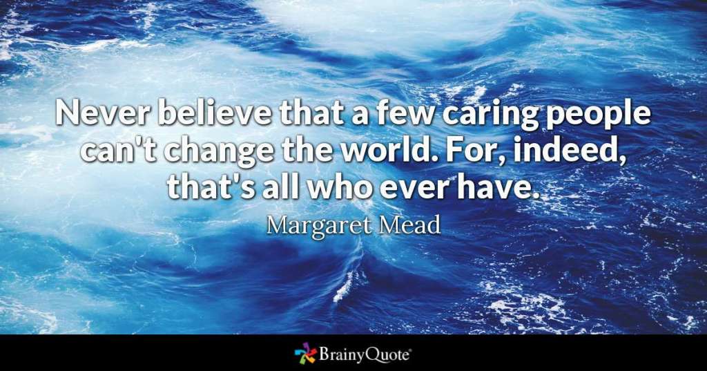 “Never believe that a few caring people can’t change the world. For, indeed, that’s all who ever have.” – Margaret Mead