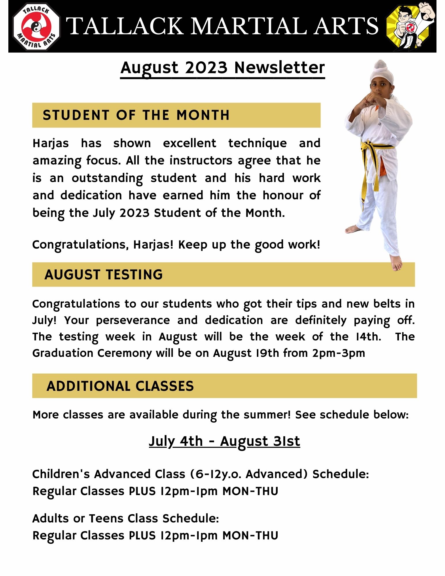 Uncategorized August 2023 Dojo Newsletter Posted by tallackmartialarts on August 2, 2023 Share this: Click to share on X (Opens in new window) X Click to share on Facebook (Opens in new window) Facebook Like Loading... Related
